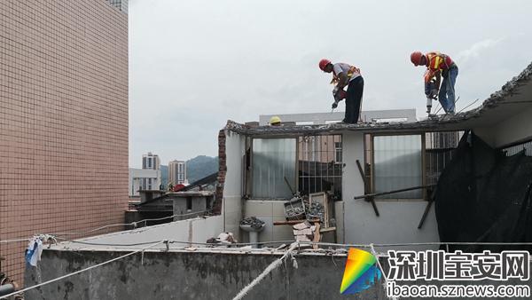 当天拆除建筑位于新安街道69区,现场为一排板房建筑,未取得临时建筑相关报建手续,街道执法队依法对其进行清拆行动。