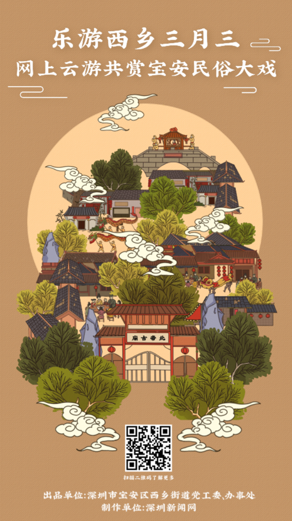 今年受疫情影响,西乡三月三庙会取消了线下活动,为满足市民需求,3月23日,西乡街道联合深圳新闻网打造了一场“乐游西乡三月三”主题线上“云游”活动,推出“乐游西乡三月三”全景游园H5、网络专题、祈福祝愿签等线上产品,居民足不出户就能享受民俗文化盛宴,截至目前各类产品吸引了60万人次观看。