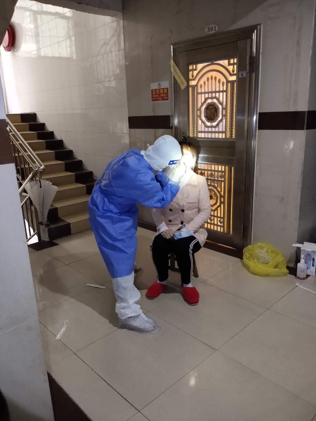 丁梦娜告诉记者,上门采样是一个兼具体力和脑力双项挑战的任务。在采集过程中采集人员需要高度集中精力,操作既要小心翼翼、轻柔,又要快速准确,尽量减少患者呼气排出的气溶胶量,一个流程下来,汗流浃背是常事。且石岩大多数楼房是没有电梯的,有的甚至高达十余层,楼房之间的道路错综复杂,采样人员需要在网格员的带领下对每个小区进行走访,逐栋攀爬楼梯,工作一天下来,膝盖疼痛得不行。走街串巷时遇到暴雨大风极端天气,身穿单薄防护服的医生也只能凭着“一身正气”抵御风寒。即使防护服都被雨水打湿,被冻得瑟瑟发抖,丁梦娜也依然冒着雨、迎着风,坚定地将足迹印上石岩的大街小巷。