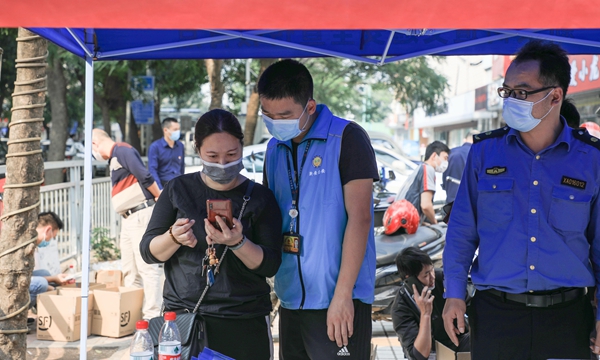 社区工作人员正在帮助居民进行电动二轮车的备案登记