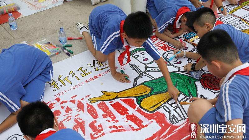 “我画的是红船,100年前党的一大在上海召开,后又秘密到嘉兴南湖的一条红船上召开,从那天起我们的中国共产党诞生了。通过绘画,让我更加深刻地记住那段伟大的历史。”来自松岗中英文实验学校的信亚盼告诉记者。经过1个多小时的精心绘制,一幅幅满含深情的作品呈现在大家眼前,诉说着“青春心向党,做合格社会主义接班人”的心声。