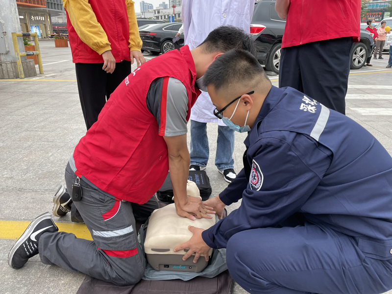 在急救知识培训志愿服务摊位前,市民纷纷驻足观看。来自松岗人民医院急诊科的医师用仿真人为市民演示抢救心跳骤停者的心肺复苏术、异物卡喉窒息急救法以及为伤员止血、包扎的正确方法。在专业医生的示范后,市民都跃跃欲试。大家一边专心听着医生讲解,一边运用手中的模型进行操作练习。志愿者骨干肖玉芝在练习心肺复苏技能后说:“学习一些急救知识,在生活中遇见紧急情况时,能及时进行自救与互救,对大家都是很有益处的。”