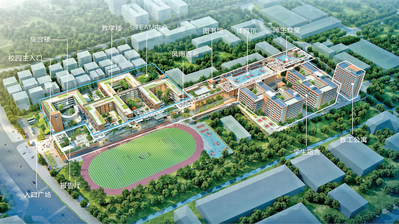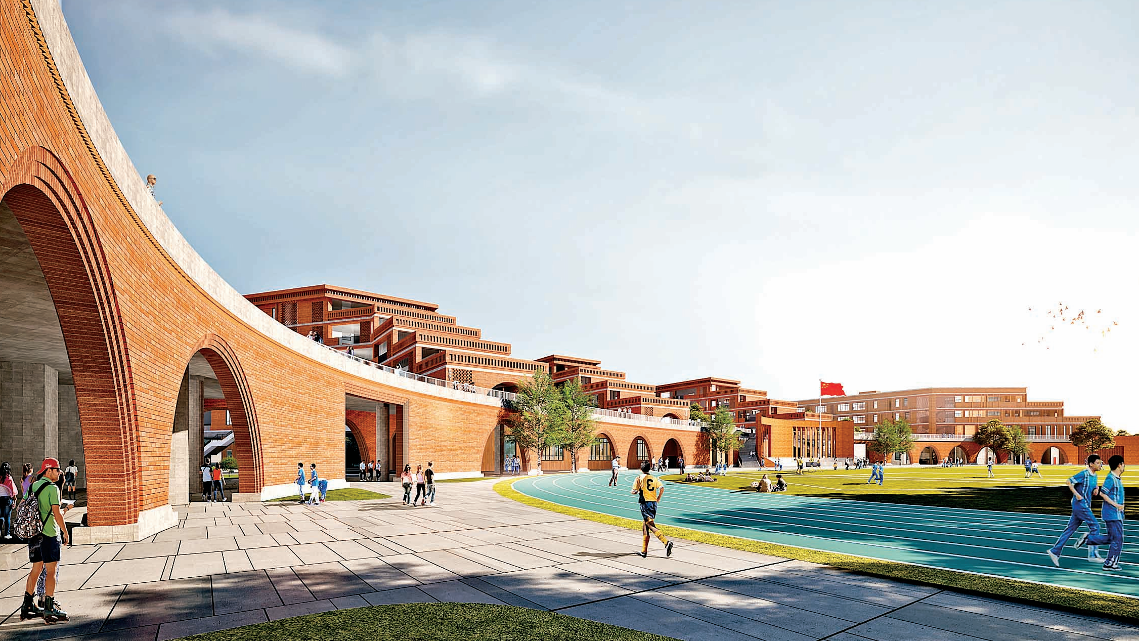 “学校致力于打造一个多元、开放的校园,使其成为学生快乐求学、诗意生活、和谐互动的理想殿堂。”学校筹建负责人介绍,校园采用未来学校的理念规划设计,整体建筑大气典雅,富有岭南地域特色,极具人文气息、艺术气质;创新采用双首层设计,建有运动区、礼仪文化广场、屋顶露台花园、圆环广场等主题分区,以满足学生对生活配套、情感体验、思想交流等多层次的需求;还建有藏书十万余册的独栋图书馆、设备高端的千人报告厅和音乐厅,充分保障学生多元学习与个性发展需求。