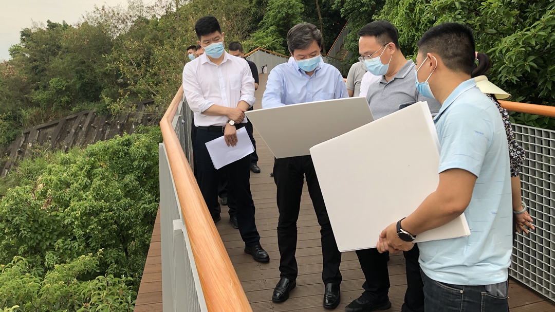 最后,倪勇一行来到铁仔山顶,研究铁仔山国家高新区规划建设情况。倪勇强调,西乡是高度建成区,拥有非常好的产业基础和充裕的产业空间,要认真梳理优化高新区的规划,加快高新区的建设。