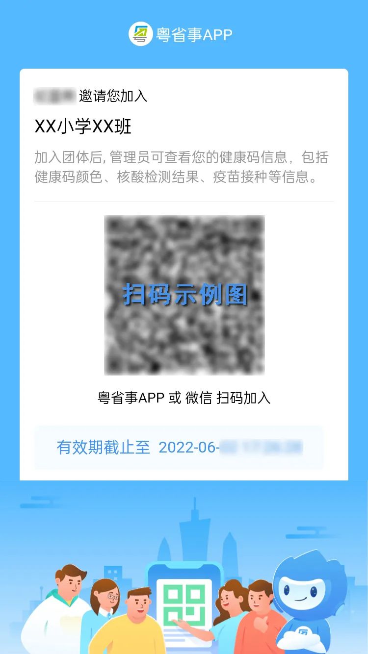 家长通过点击邀请链接或扫描图片二维码的方式,进入“加入班级团体”页面,点击“打开粤省事APP并加入”。如链接过期失效,可联系班主任获取新的邀请链接。