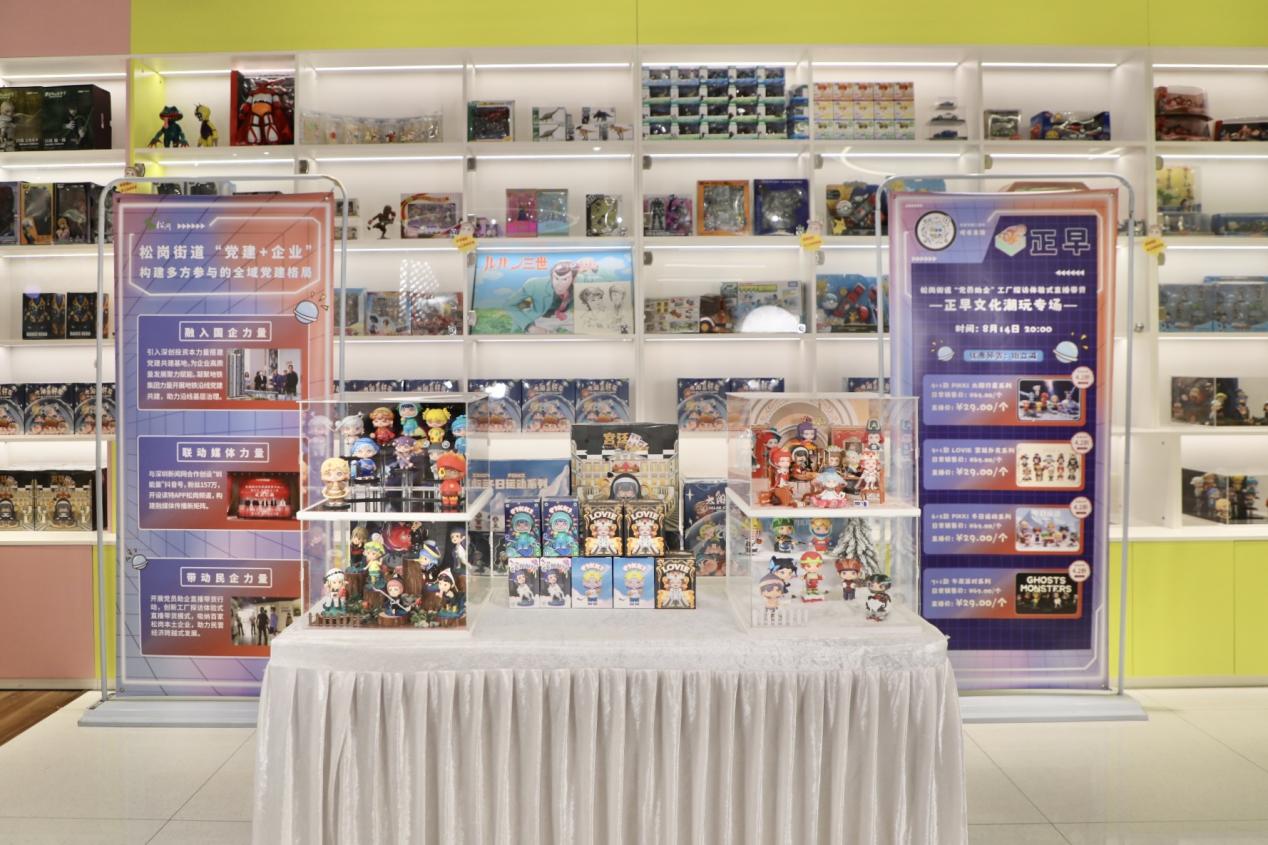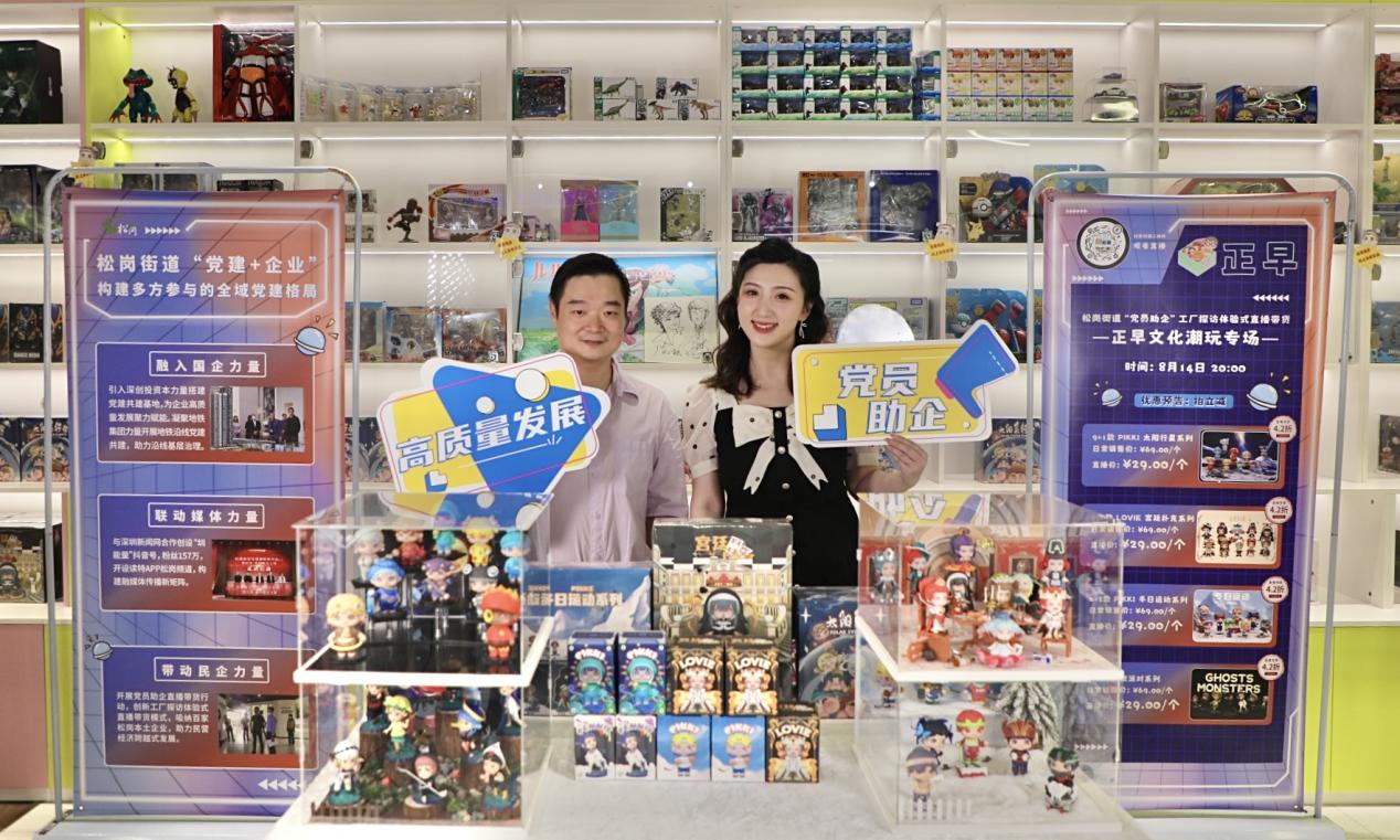 而与卡士乳业专场、麦轩食品专场有所区别的是,第三期正早潮玩专场直播以潮流玩具圈层文化凝聚当下年轻人的共鸣,是松岗街道抢抓深圳布局“20+8”战略性新兴产业集群的机遇,发力数字文化创意产业集群,以数字技术赋能文化产业转型升级的全新尝试。也进一步彰显出松岗街道产业经济的现代性、创新性、创造性,打造潮玩新业态,引领Z世代消费风潮。