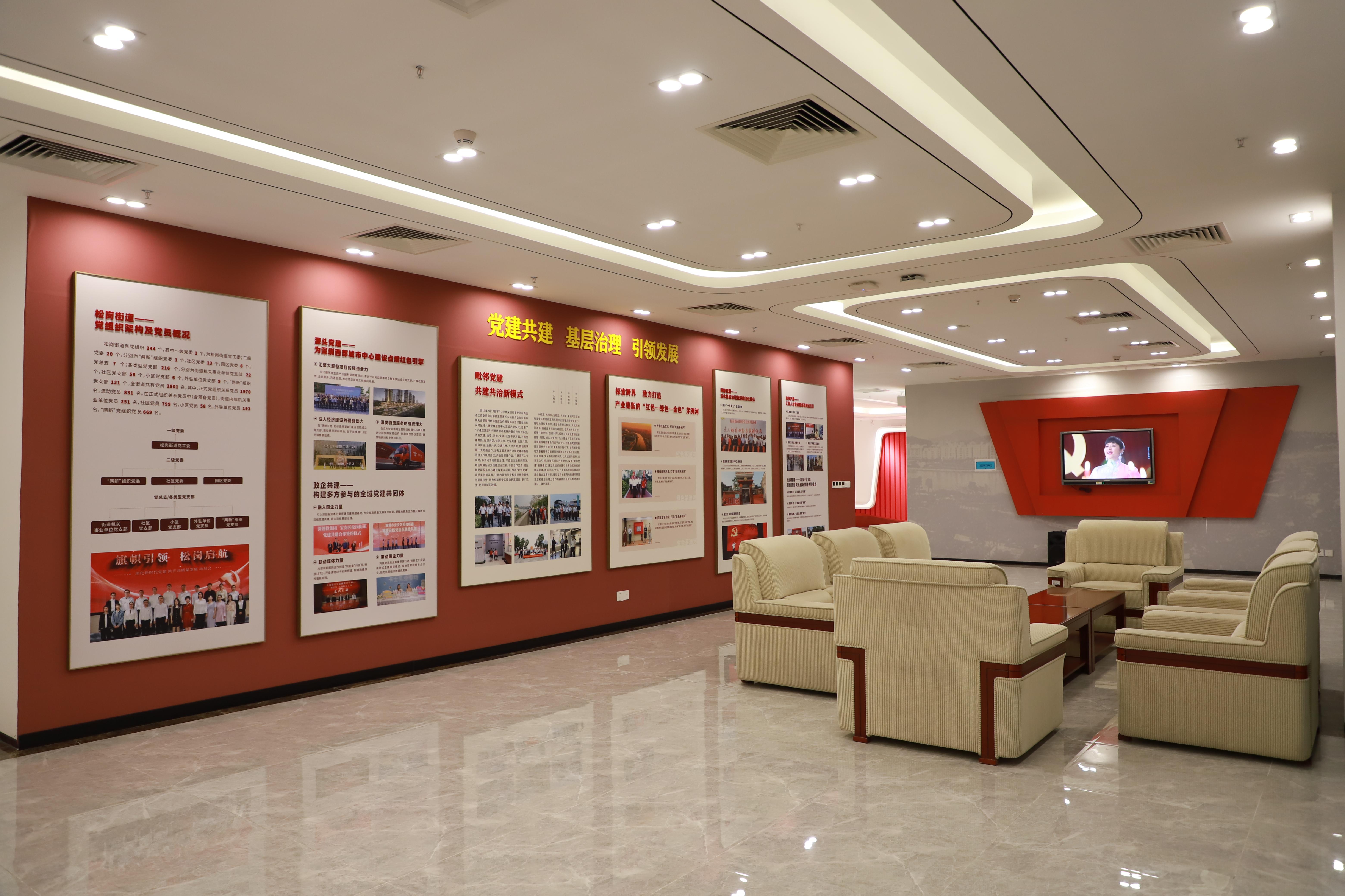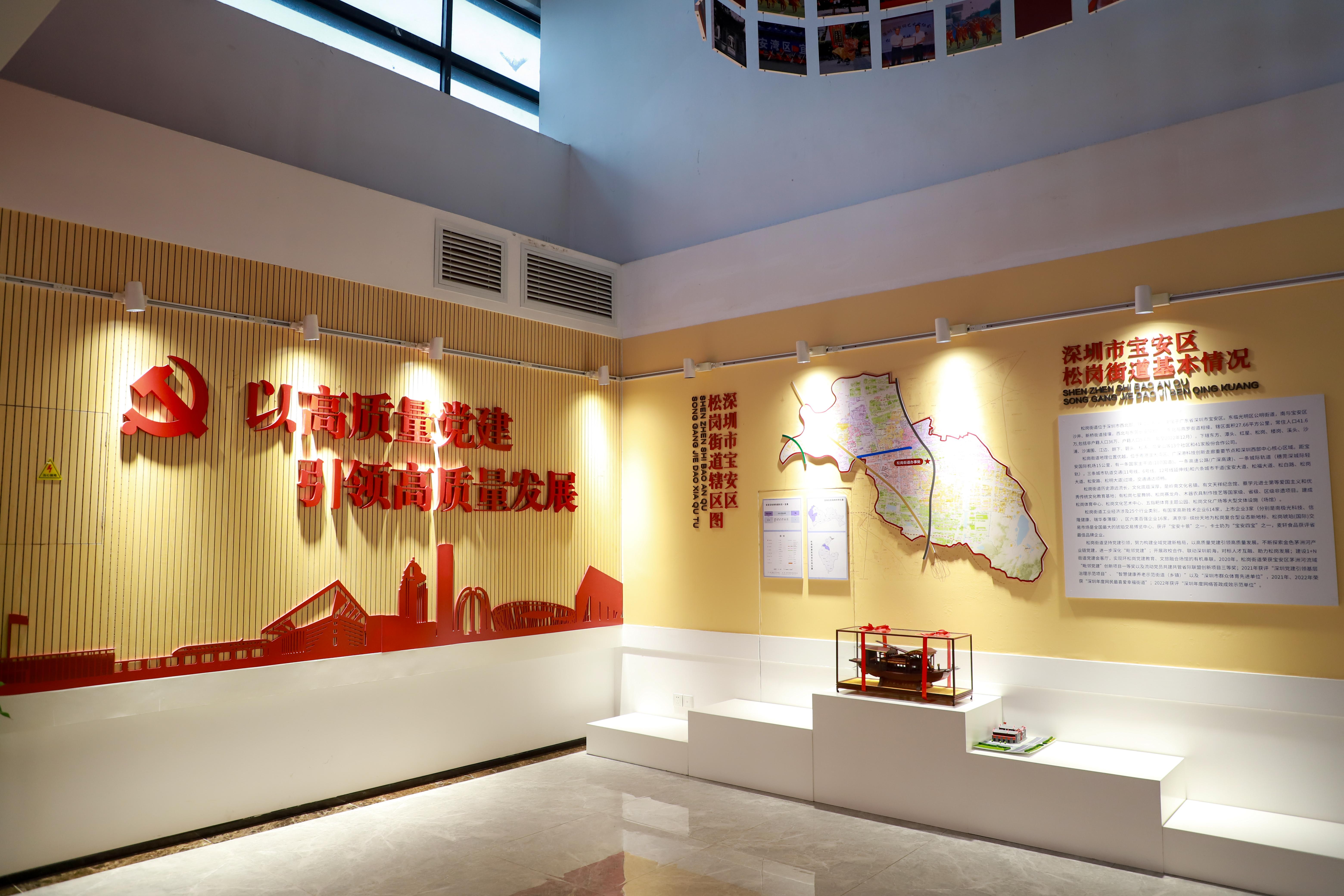 松岗街道旨在将全域党建会客厅打造成“党群连心”的融合阵地,选址在交通便利的松岗街道文化艺术中心大楼,紧邻地铁11号、12号和6号线,占地面积约3300平方米。以需求为导向,全域党建会客厅由党群服务、学习教育、人才服务、基层治理、党员宣誓、共享活动等六个展厅组成,附加有红色窑洞打卡点、非遗文化墙和党建小剧场等学习、活动设施。