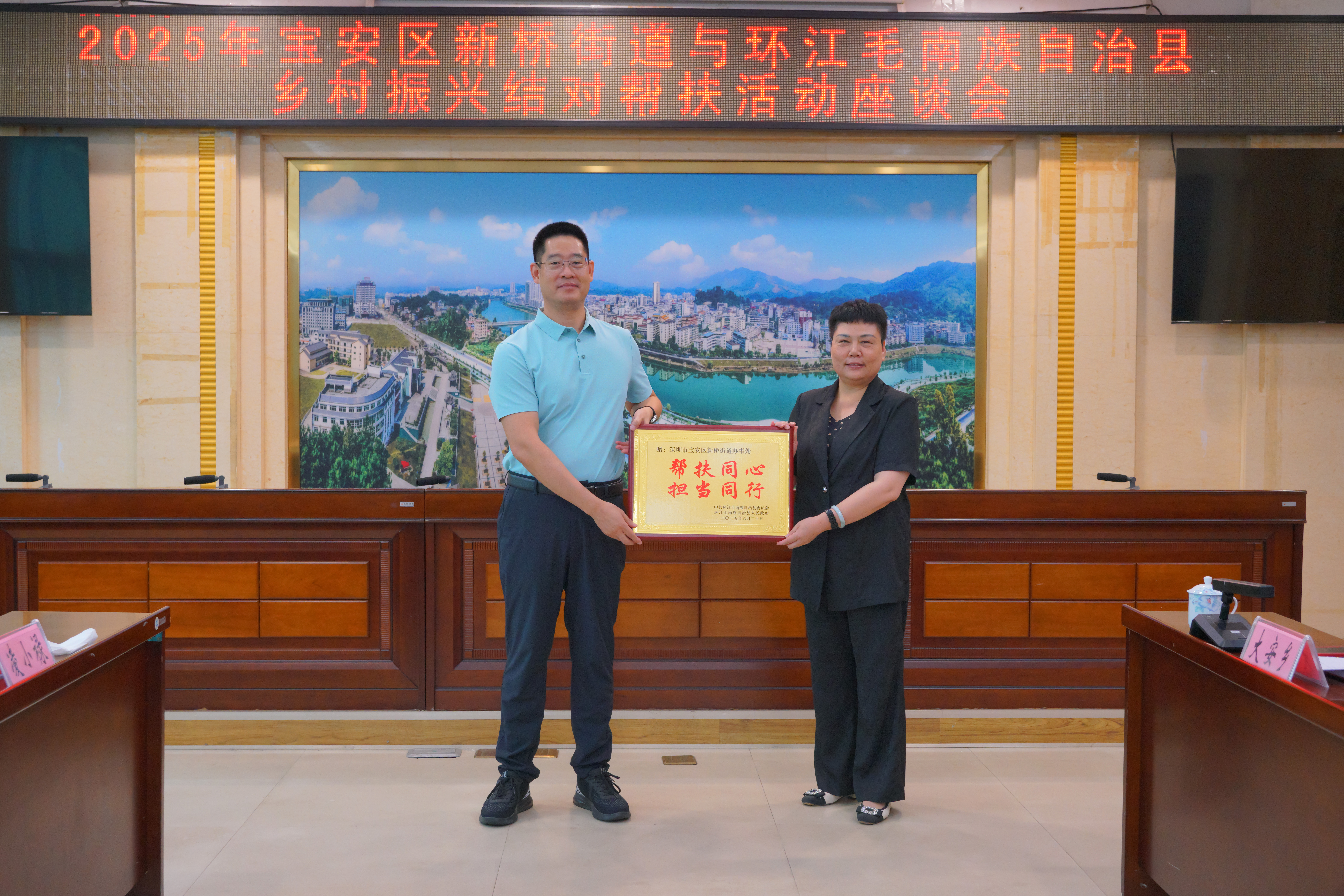 6月20日,新桥街道一行在环江毛南族自治县行政会议中心召开粤桂协作座谈会,双方分别就两地协作工作进行了深入探讨。接下来,新桥街道将继续秉持“村所需,我所能”的初心,聚焦饮水灌溉、道路硬化等民生急难愁盼问题开展精准援助,助力当地农业高质高效、乡村宜居宜业、农民富裕幸福,全力提升当地群众的幸福指数。