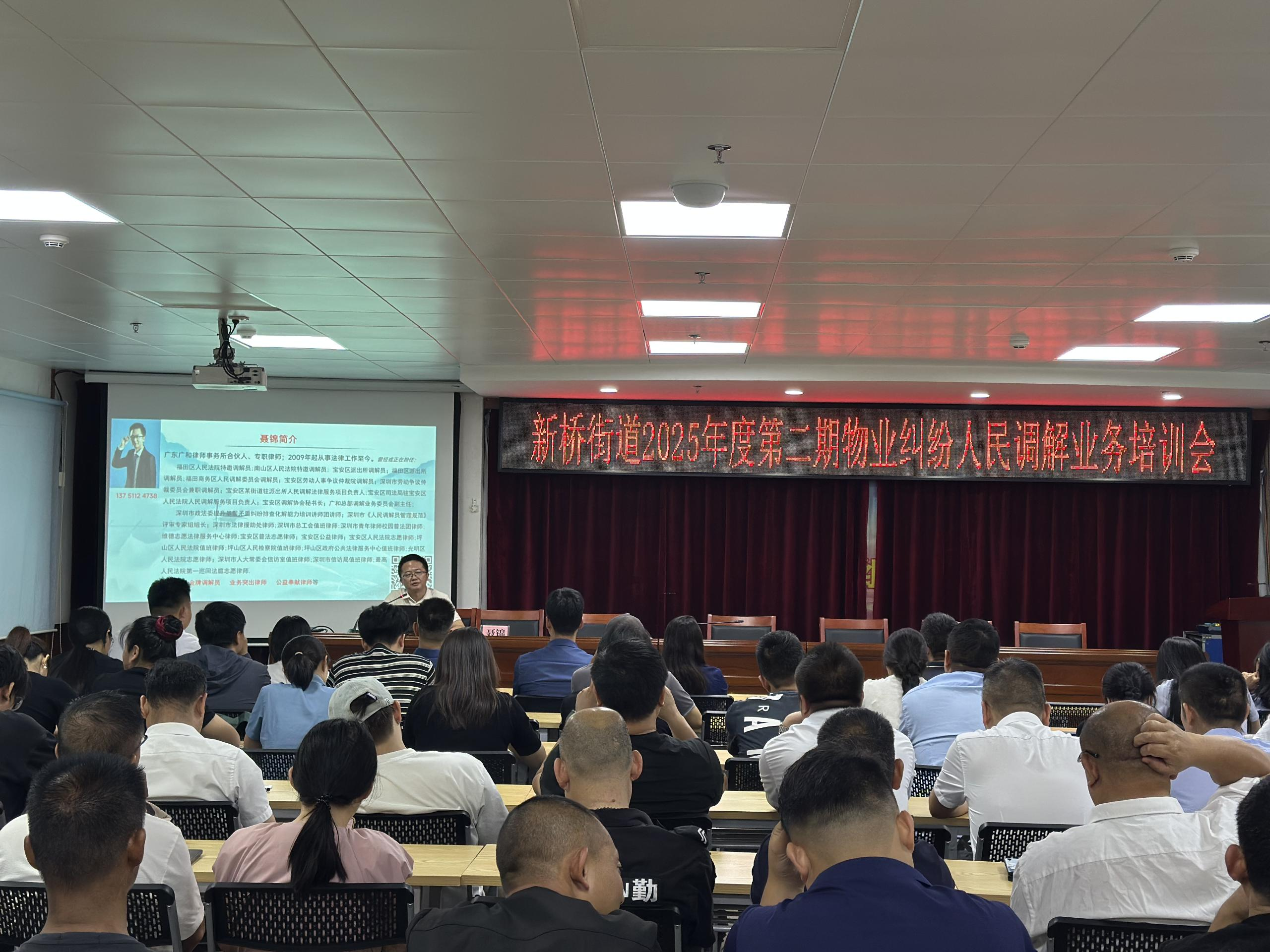 深圳新闻网2025年7月1日讯(记者 何静 通讯员 卢楚楚)为坚持和发扬新时代“枫桥经验”,实现“家门口”化解纠纷,新桥街道建立物业纠纷调解工作室,形成“司法所+物业管理办+社区工作站”的联动调解模式,充分利用辖区小区物业公司、城中村管理处的“人熟地熟事熟”和时时都在、随时可找的优势,将其充实到物业纠纷调解队伍中。同时,为了切实提高物业纠纷调解队伍矛盾纠纷预防化解的能力与水平,新桥街道为此开展两期培训会。