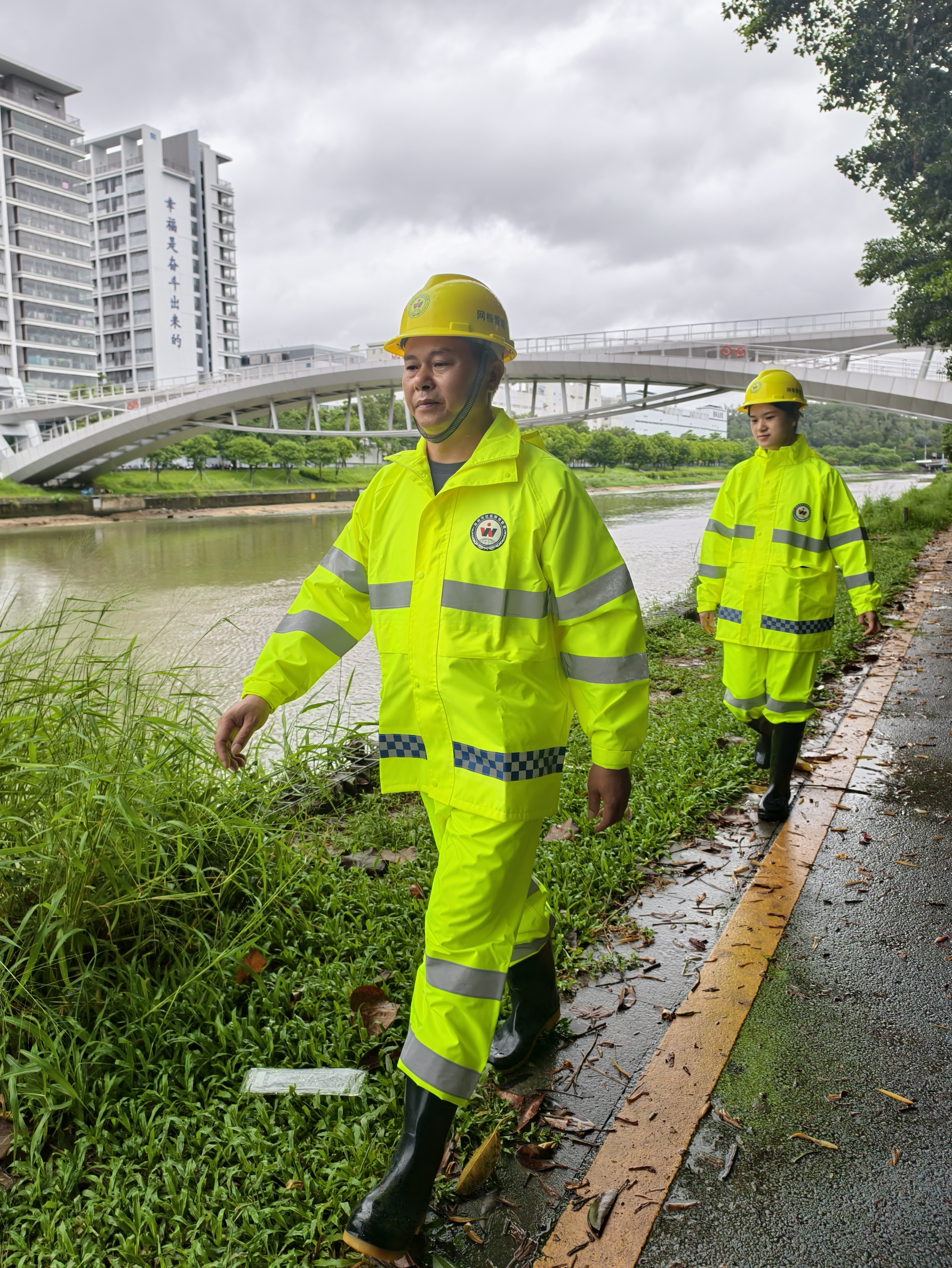 风雨中值守巡查消除隐患。7月20日,辖区风势加强雨势加大,网格员加强对出租屋周边、路面等区域巡查力度,巡查上报并协助清理倒伏、折断树木、围挡等,同时深入公园、河边等人员活动频繁的户外场所进行宣传,劝导在外居民立即回家,守护居民安全。