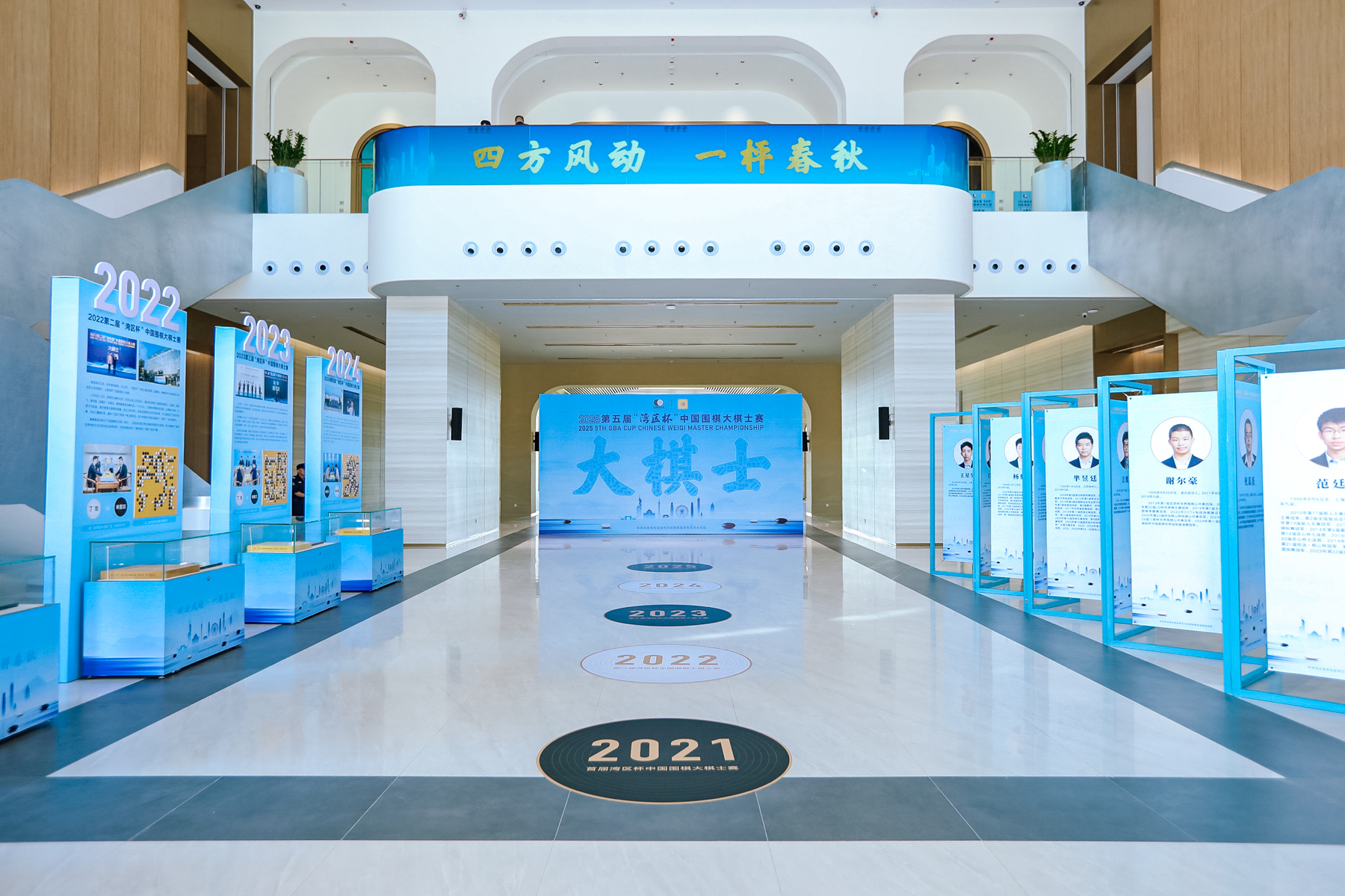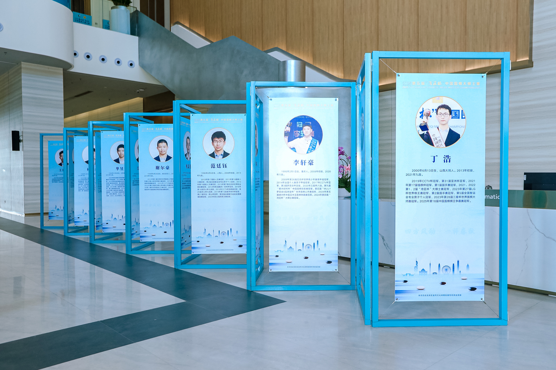 为庆祝赛事迈入第五届,组委会在赛场内部特别设计了“大棋士历史棋路”展示区,系统梳理了从2021年至2025年历届赛事的亮点、冠军掌印及经典棋局,并设立了2025年参赛棋手姓名墙,为赛事营造出强烈的仪式感与历史厚重感。