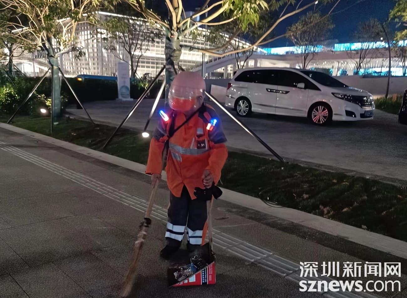 由街道城管科统筹协调,执法队和社区工作站工作人员深入清理城中村卫生死角;众多市民也自发拿起工具,与身着橙色工装的环卫工人一同保洁;沿街商铺的老板们严格落实“门前三包”责任,主动清扫门前垃圾;平通公司在湾区之眼等地标区域投入8台无人驾驶扫地机器人,构建“人机协同”保洁网络,实现了高效精准作业。多方力量汇聚,用双手共同擦亮城市容颜。