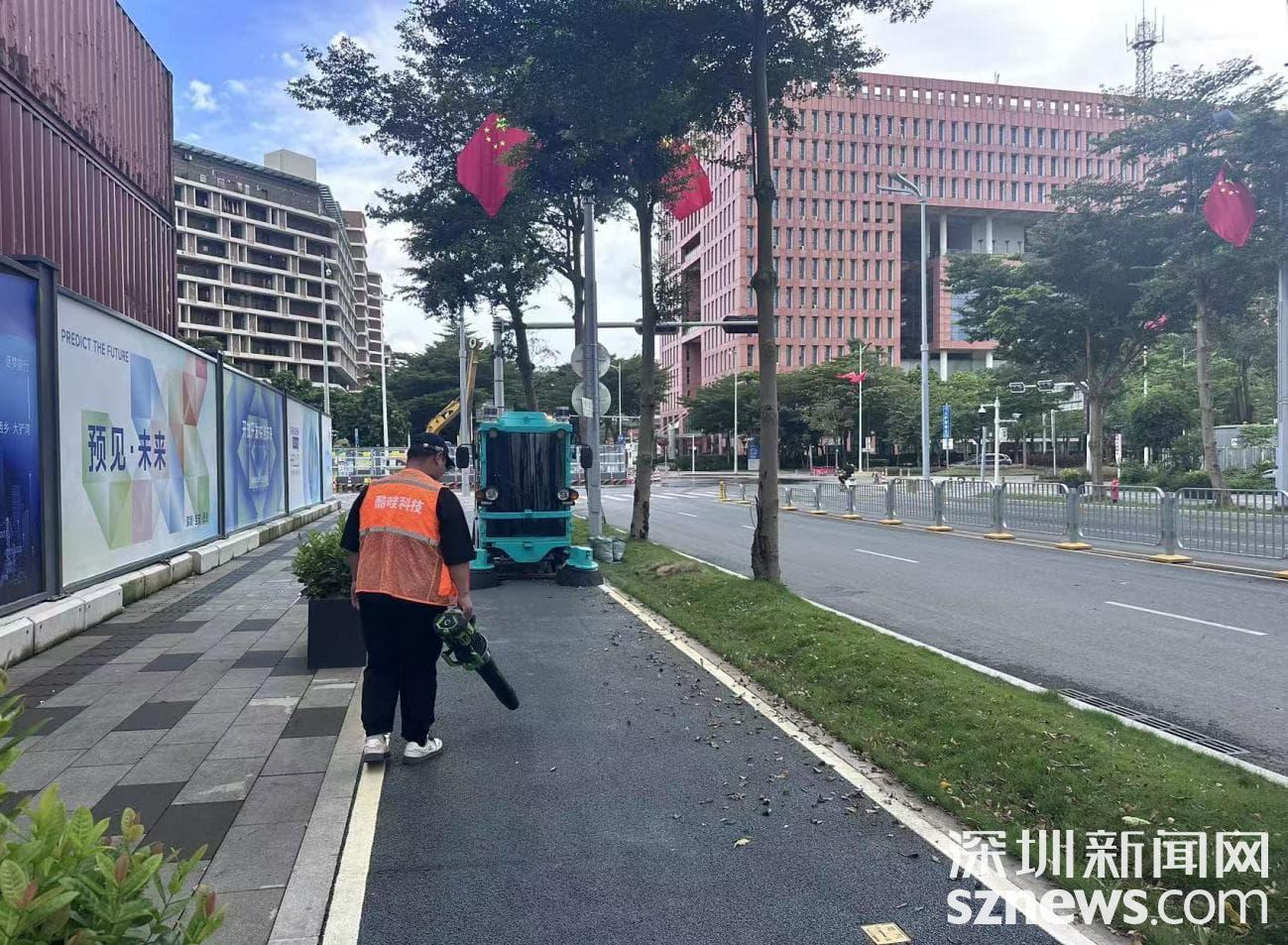 福海街道针对会展片区及周边重点区域,大幅提升保洁等级,同时增派50名保洁人员专项清理卫生死角,在凤塘大道等关键路段强化人机结合作业力度,以“精细化”保洁模式确保重点区域的整洁有序。