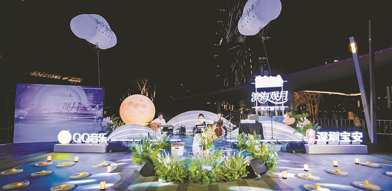 “潮音海上来·滨海观月”沉浸式音乐会在欢乐港湾上演。