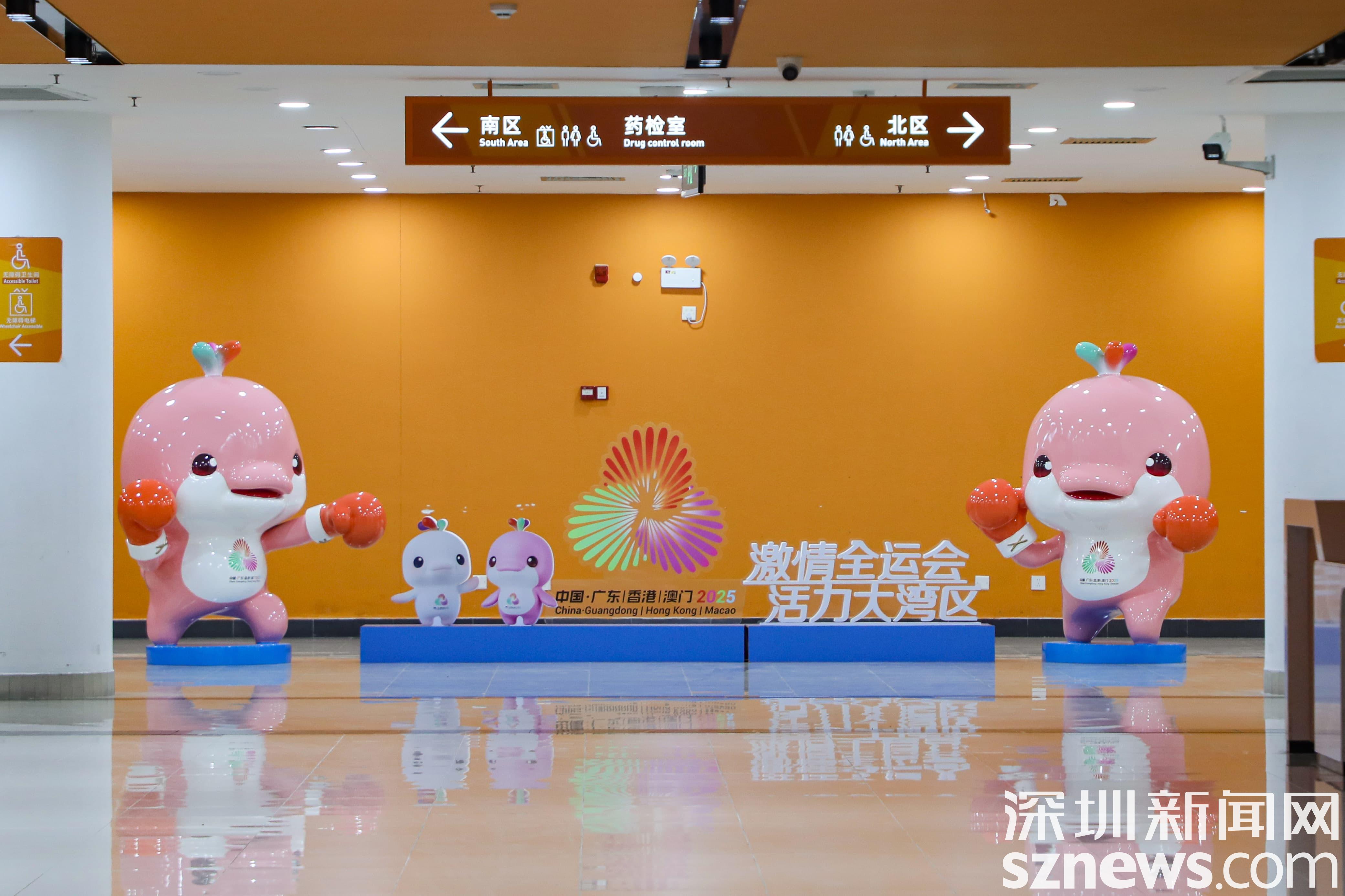 深圳新闻网2025年10月28日讯(记者 李小辉 实习生 杨子康)近日,随着十五运会赛事的临近,宝安体育场馆周边氛围营造已全部就绪,赛事气息扑面而来:宝安体育馆外的彩绘墙格外吸睛,墙上绘有拳击、篮球、足球等十五运会运动项目,运动员身姿鲜活灵动;沿街路道挂满了色彩鲜明的宣传标识,体育场馆及周边的主题海报张贴得整齐有序;吉祥物 “喜洋洋”“乐融融” 则以憨态可掬的形象出现在雕塑及景观小品处,与赛事元素相映成趣,每一处布置都传递出盛会将临的热烈氛围。