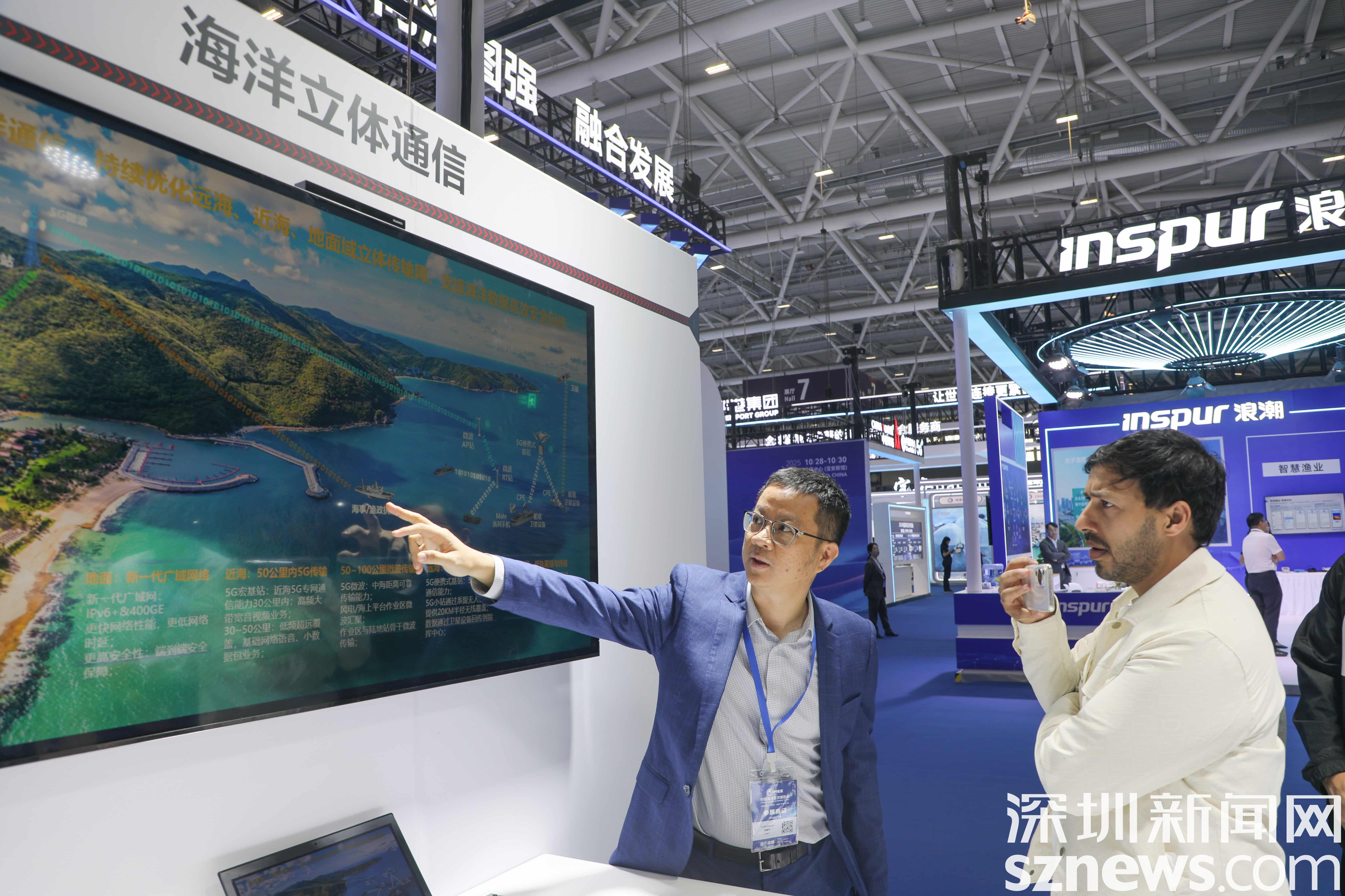 据介绍,7号馆汇聚了招商局、中交集团、中国移动、中国联通、深圳港等一批涉海龙头企业。其中招商局、中交集团、深圳港集团等深耕港航物流与基建,业务覆盖全球,而深圳移动、联通两大头部通讯运营商则聚焦以数字技术赋能海洋产业升级。此外,华为技术有限公司、浪潮智慧科技有限公司、深圳市朗诚科技股份有限公司等涉海企业也带来系列海洋领域相关先进技术和创新产品。