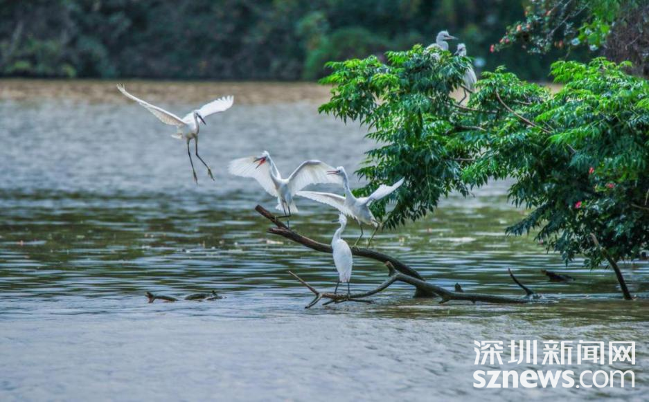 生物多样性日益丰富。89.1%的自然生态岸线串联水域-湿地-林地梯度生境,吸引了千只白鹭成群安家,黑脸琵鹭、东方白鹳等国家一级保护动物频频到访,更有岭南浮蛙等新物种在此现身,这里已经成为深圳最大的湖泊湿地生态系统,是500多种动植物共享的生命乐园。