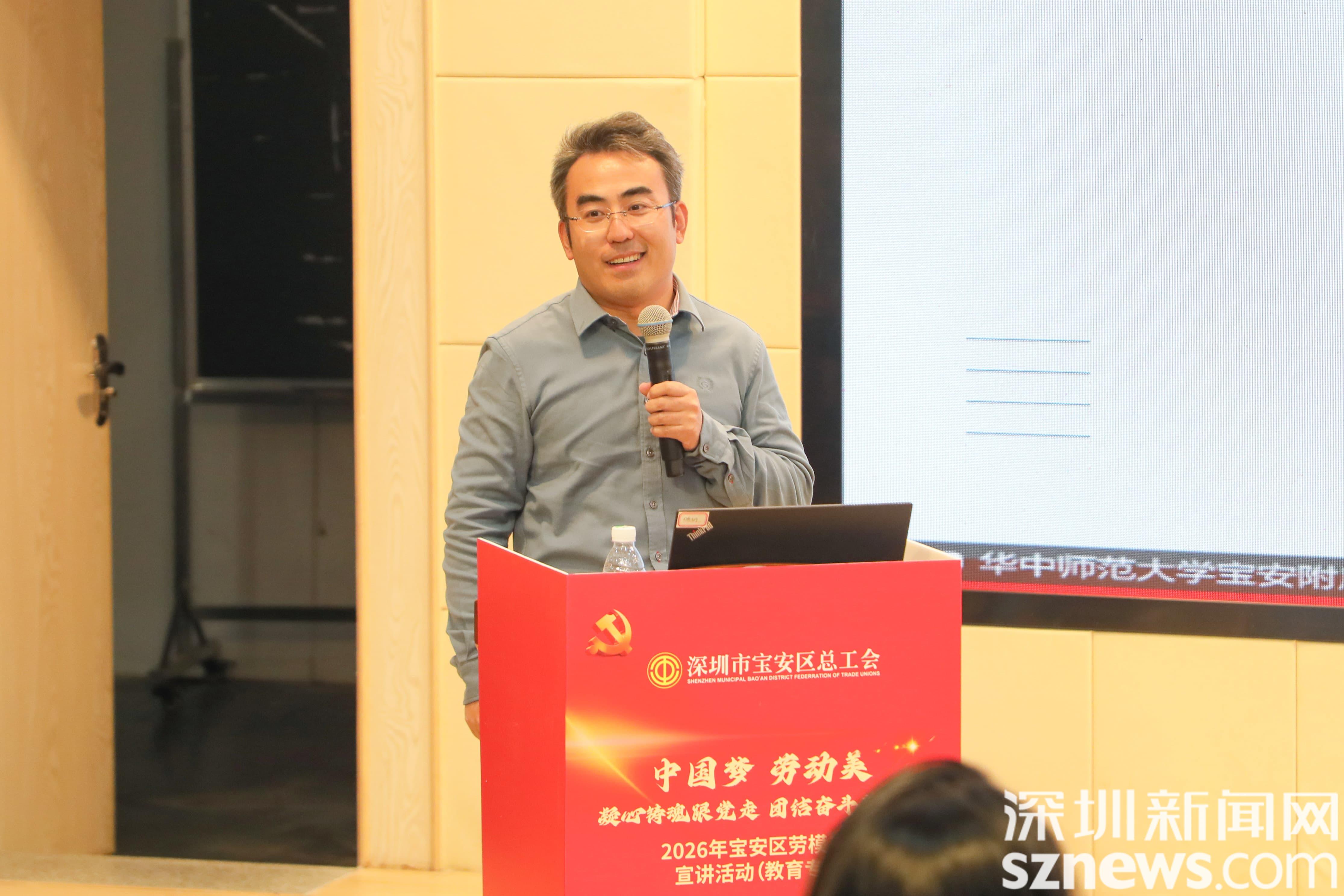 深圳新闻网2026年1月9日讯(记者 李小辉 实习生 连家鸿)1月7日,2026年宝安区劳模工匠宣讲活动(教育专场)在华中师范大学宝安附属学校举行。活动邀请了宝安区劳模工匠宣讲团成员、宝安中学(集团)高中部化学教师郑良凯作专题分享,旨在弘扬劳模精神与工匠精神,强化师德师风建设,激励全体教职工潜心育人、砥砺前行。