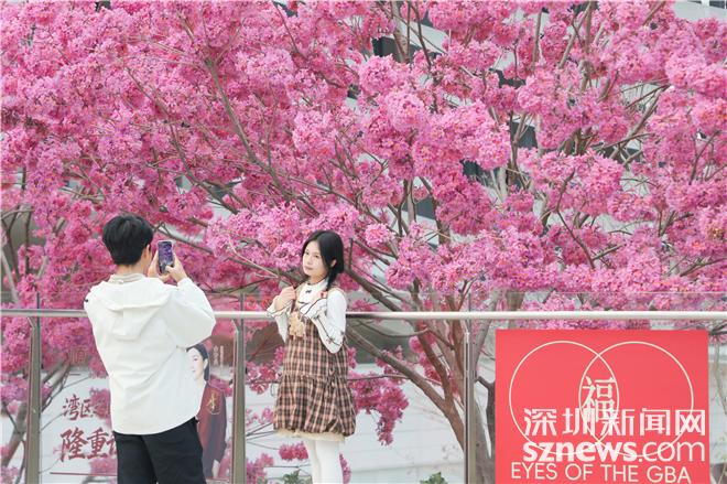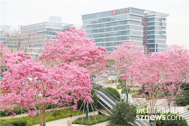 深圳新闻网2026年2月4日讯(记者 李小辉)今日立春,万物启新。近日,位于宝安区湾区之眼书城周边的紫花风铃木迎来盛放期,粉紫花海与现代书城建筑相映成趣,成为宝安春日里一道兼具人文气息与自然之美的亮丽风景,市民可前往这片 “紫色花海”,在书香与花香中迎接春日,感受宝安城市发展的温度与美感。