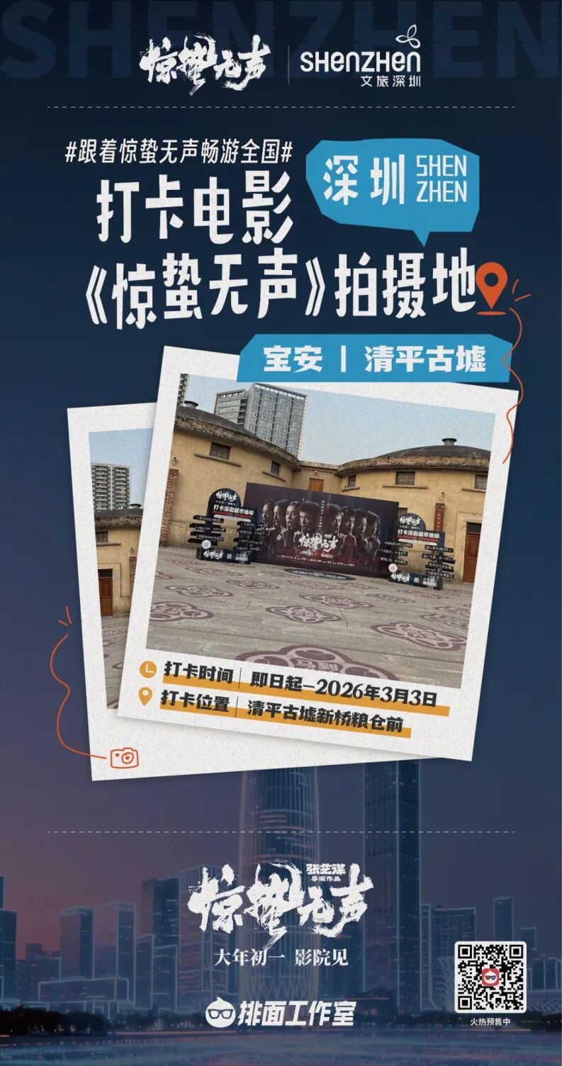 深圳新闻网2026年2月15日讯(记者 李小辉)张艺谋导演最新力作《惊蛰无声》将于大年初一登陆全国院线,该片近90%场景取自深圳,其中多处重要镜头在宝安新桥影视产业基地完成拍摄,同步推出的多处电影同款打卡点即日起至2026年3月3日免费向市民游客开放。