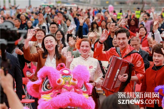 银蛇翩然去,金马踏春来。在当天的演出舞台上,还出现了两张外籍友人的面孔。来自亚美尼亚的外籍艺术家身穿节日盛装首先上场,用手风琴为观众带来两场风格迥异的演奏——匈牙利名曲《查尔达什舞曲》,以及家喻户晓的中国新春歌曲《恭喜恭喜》。琴声悠扬,旋律欢快,年轻的演奏家与台下的小观众击掌互道“新年好”。这一刻,岭南的风与异域的音符在湾区上空交织,奏响了宝安“超国际”新春的序曲。