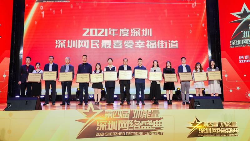 读特客户端·深圳新闻网2021年12月15日讯(记者 曾舒琪 通讯员 刘志远)12月15日,由市网信办指导,市互联网行业联合会、市网络媒体协会主办,深圳新闻网承办的2021“圳能量”深圳网络盛典在商报大厦隆重举办,现场颁出系列大奖。宝安区松岗街道荣获“2021年度深圳网民最喜爱幸福街道”奖项。