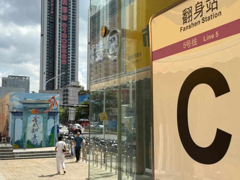 翻身路位于宝安区新安街道核心区域,因地铁“翻身站”的美好寓意在社交媒体走红,吸引市民慕名而来,在此打卡许愿、传递好运。