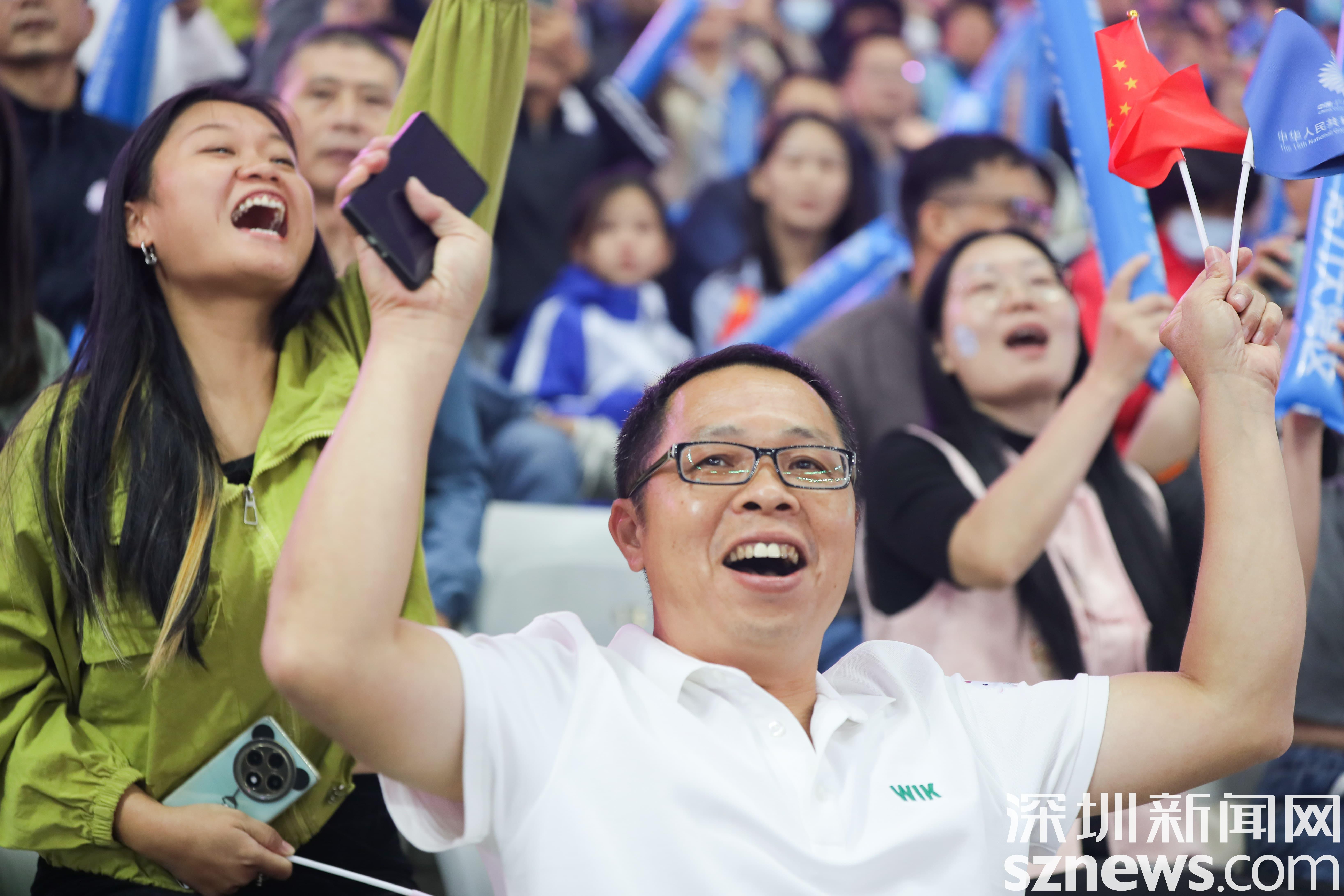 现场4176名观众热情高涨,氛围格外热烈。有的观众自带锣鼓,随着比赛节奏敲出铿锵节拍;有的自发站起领喊 “广东加油”,带动全场观众齐声呼应,口号声与锣鼓声交织回荡,广东队进攻时掌声雷动,进球瞬间更是爆发出震天欢呼,感染力十足。