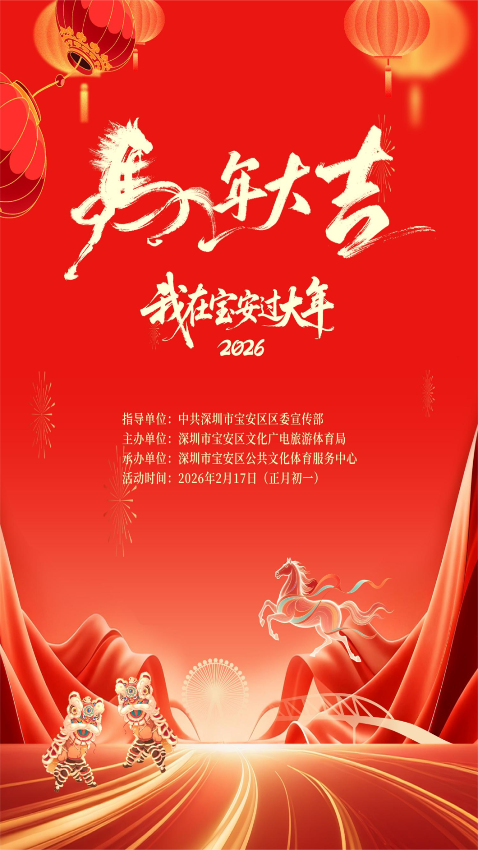 从广场巡游到博物馆创艺,从城市高空到静谧书房,宝安将传统年俗、现代艺术与城市风景相融合,编织出丰富的春节文化地图,诚邀广大市民游客走进宝安,在多元文化体验中,邂逅湾区新春仪式感,乐享马年新春。